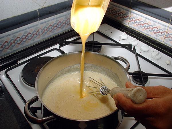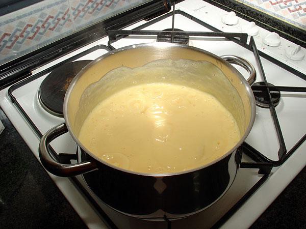 Começamos por colocar quase todo o leite numa panela, que convem ser grande por causa da espuma do leite, juntamente com as casquinhas de limão e com a canela e vai ao lume para ferver. Agora num recipiente juntamos o resto do leite, a maisena, o açúcar e as gemas e misturamos muito bem (eu uso a varinha mágica). Quando o leite estiver a ferver juntamos a mistura anterior e deixamos ao lume durante dois minutos, tendo o cuidado de ir mexendo bem para não agarrar ao fundo. Por fim tiramos o pau de canela e as casquinhas de limão, e colocamos em taças pequenas, ou numa grande, e deixamos arrefecer. Quando estiver frio colocamos no frigorífico.